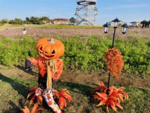 観覧車やプチ動物園もある広い園内はハロウィン頑張ってた。