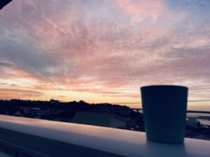 んでコーヒー煎れて朝焼けタイムが最高すぎた。冬の始まりのひんやりした空気を頬に感じつつ、すするコーヒーの美味さね(//∇//)