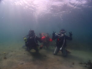センターには真面目すぎる大手ダイビングセンター「ココナッツ」さんのスタッフ研修が行われ、若きスタッフさん達はブリーフィングから水中トレーニングの手順など確認されてるようでした。さすが業界トップクラスです。これからのダイビング業界もこの若手イントラがいれば安心です。