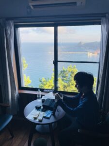 全室オーシャンビューの最高のお部屋でカメラのお手入れしーしばしチルタイム。