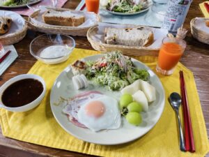 だいじんこの朝ごはんはほんとホテルビュッフェ並みの種類と美味しさでたまらん。。焼きたてふわふわのレーズンパンも美味すぎる。。(≧∀≦)