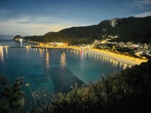 夜寝る前に炭の火を消しにテラスから撮った神津の夜景が。。透明度良すぎて波消しブロックまで映ってすげー(・∀・)