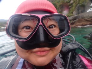 えりつぃんのニュースーツもキャップとフィンのバランスが良く、映えてて素敵(^ ^)