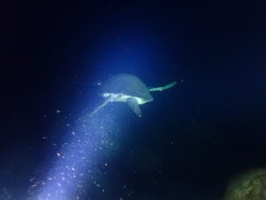 目の前に大きなアオウミガメがやってきた!寝ぼけててふーらふらしてたけどすげー迫力だった!