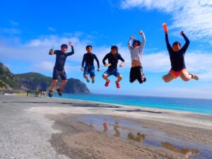 ふぅ。どーしても赤崎は我々を童心に戻す。着水の瞬間に鼻に海水が入るから、全員鼻声になりつつもジャンプミッションクリア!