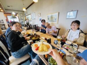 ランチはいけすやのアジ丼食べたかったけど30組並んでるとのことで、予約のできる安心の貝殻亭のミックスフライをいただきー