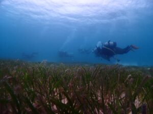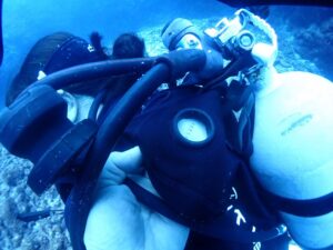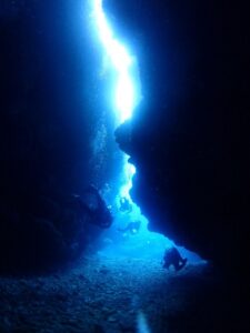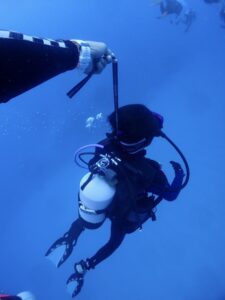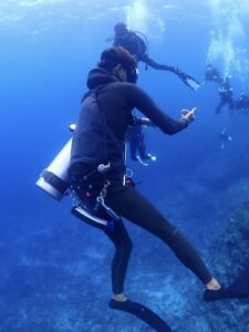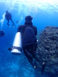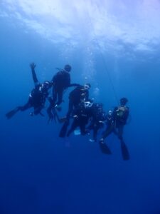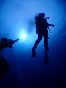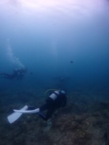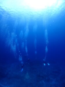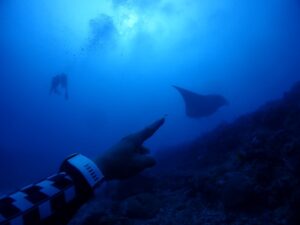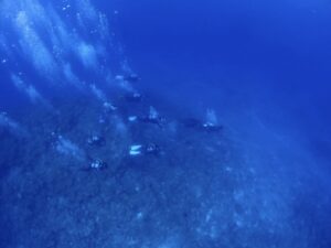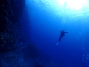そんな荒海でもマンタが見たい一心で飛び込んで潜行開始