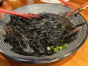 料理は石垣牛のユッケにもずくの天ぷらに!