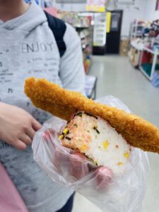 おにぎり選んで、フライ選んで、フライの形におにぎりをギュギュと整えて食べるぜい^ ^