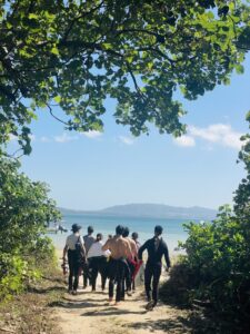青い海に到着するだけでテンションが上がり、説明を聞く前からフィンを履いてスタンバイするせっかち中島さん\(//∇//)\