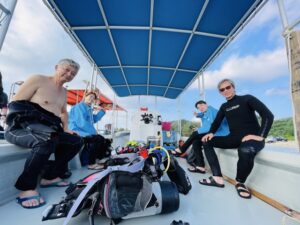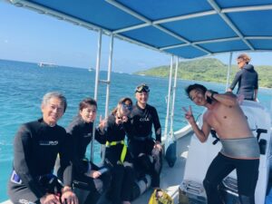 メンバーは体験ダイバーのりっちゃんと日本酒仲間のあきちゃん。そして仲良し同級生の山田パパと中島さんコンビ。