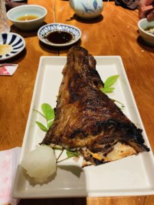 次に宇津木ちゃんもオススメのある時にしかない『マグロのアゴ焼き』石垣で獲れたマグロのアゴの部分をじっくり焼き上げたやつ。これがまたアゴにこんな食べるとこあるんやってくらい身があるし、それでいてところどころコラーゲントゥルンてなってうんまっ!!