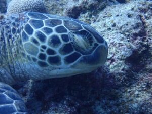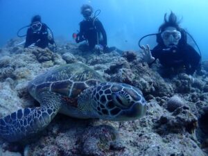 さっそくうたた寝のアオウミガメをゆっくり囲んで記念写真撮らせてもらって^ ^