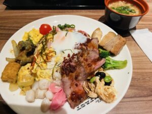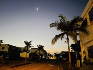 翌朝は06:30から朝ご飯スタート。石垣の朝は時差があるみたいでまだまだ月が綺麗なくらい暗い。