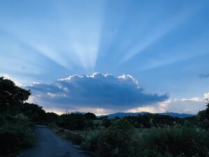 雲からとんでもないレーザービームを受けて良い日になる!目の前をキジが飛んでいき、さらには、りっちゃんがクジャクまで見つける軌跡w