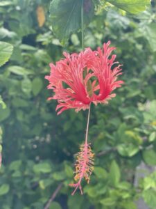 下向きハイビスカス?と思ったら『フウリンブッソウゲ(風鈴仏桑花)』なる南国の花ですって。Google先生はちゃんと教えてくれるありがたいやつ。