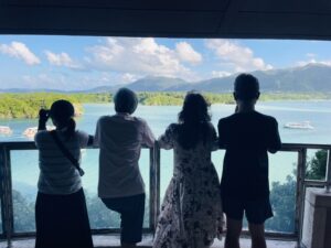 洞窟で遊んだあとは、玉取崎展望台で真っ青な海見てー