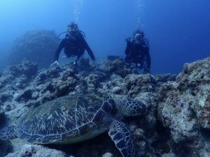 初めての体験ダイビングのお客様にも、昔ながらのテンション高めのおもろい説明でお客様の不安を取り除き、楽しませてくれる良いショップだ。