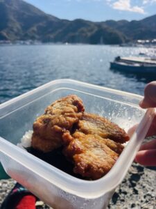宿の向かいが干物屋さんなんだけど、マスターが元料理人で何回か顔出してるうちに、日本酒など差し入れすると物々交換的に