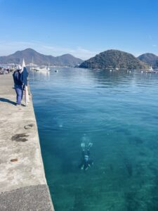 大瀬までの陸の測量が終われば次はいよいよ水中作業開始!