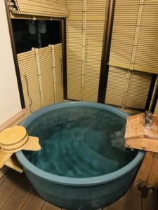 今回はなんと露天風呂付きのナイスなお部屋なので、星空と月見ながらゆっくり入ってー