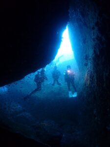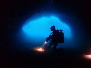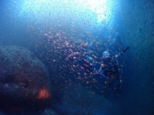 洞窟の中で透明度悪くなってきた!と思ったら魚の群れがヤバすぎた!