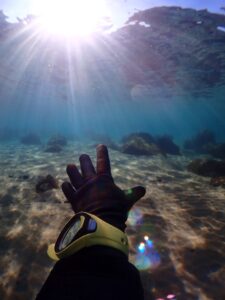 浅場の透明度は20m近いんやない!?太陽光のシャワーがハンパなし!!!