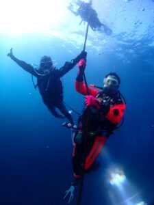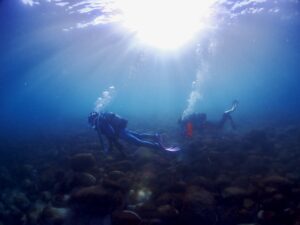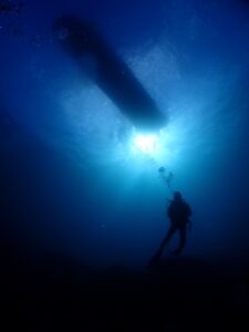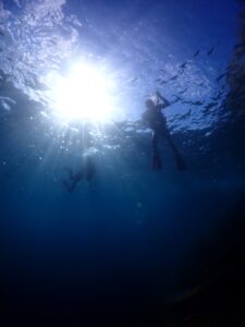 そんなこんなでとんでもない数の魚を見終えて、安全停止のナイスな光のシャワーを浴びながらファーストダイブ終了。