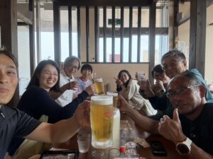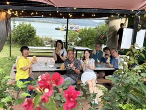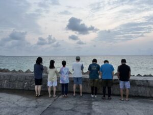 締めはみんなで青い海バックで(*´꒳`*)