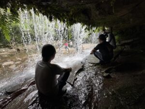 なんとこのゲータの滝は滝の裏側に入れるやーつ!