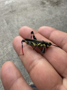 イリオモテモリバッタの足の色が赤いのに驚き朝んぽ終了。