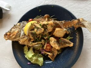 島魚のガーリックバターはもう皿から飛び出してる時点で美味いの確実なやつ。
