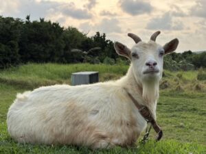 近寄ってみると朝日待ちのヤギ