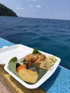 ランチは船上旨しお弁当でありがたき。