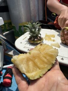 でもパイナップルの切り方が分からないからしゅまちゃんに切り方講座してもらう。