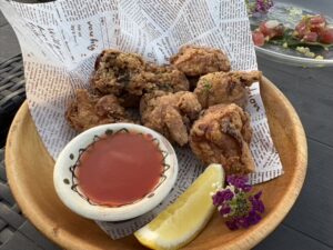 うまい。。なんだこれ、うまい。カラッと揚げてあるのに、ツボミが不思議なニュルッと感で不思議なおいしさ。