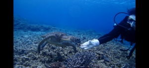 くっくっく30年も潜ってるとカメと仲良しになれるんだぜぇいᕦ(ò_óˇ)ᕤ
