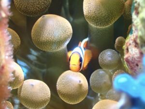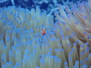 岩の間にいた超ミニクマノミがイソギンチャクに顎乗せてて萌え死んで。。