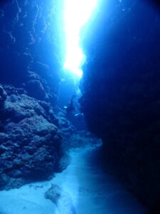 だから、「ま、今日はここで潜りますぅ」と何気なく連れてきてもらったポイントに入ると。